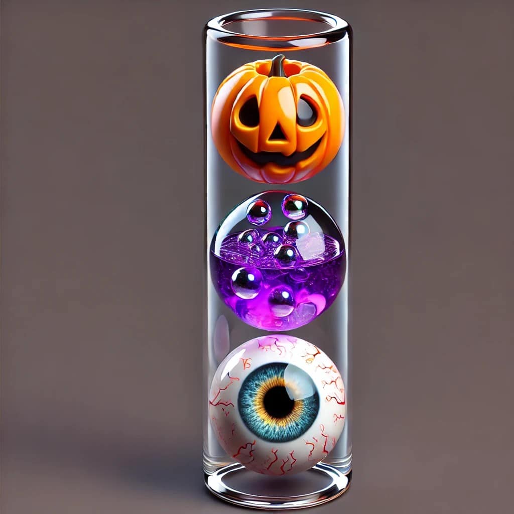 I’ve taken a very, very old magic apparatus—traditionally used with colorful balls—and given it a spooky makeover. Now, instead of colorful balls, we’re dealing with eyeballs, jack-o-lanterns, and bubbling witches’ cauldrons. But here’s the twist: the jack-o-lantern is possessed by a mischievous spirit and keeps messing with me throughout the trick! The only way to stop him? We banish him into the “mystery sack of doom!”